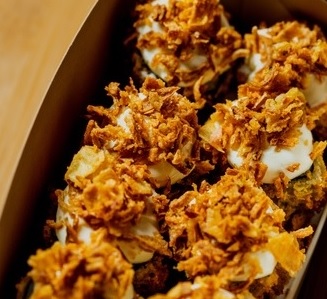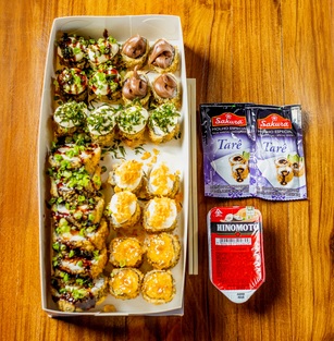 Hot DoritosSalmão empanado e frito com cream cheese e doritos por cima(Medio (4 Un.)) R$ 18,00 / (Grande (8 Un.)) R$ 29,00